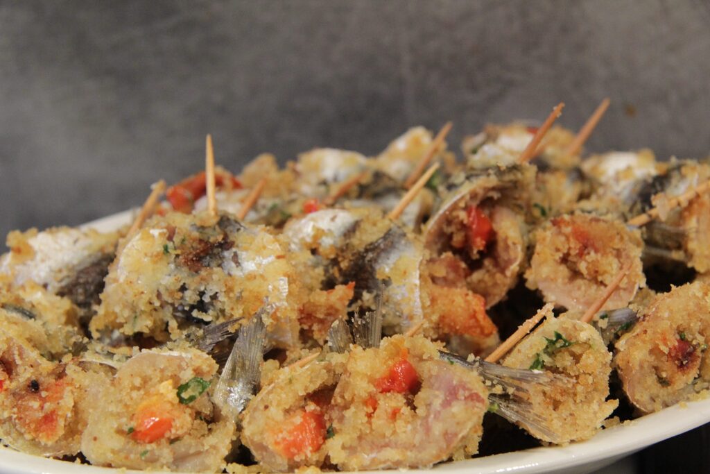 • Rolinho de anchovas com migalha e tomatinhos. Limpe e tire as espinhas das anchovas, prepare migalhas de pão fresco e tempere com sal, azeite, salsa, tomatinhos picados e alho. Prepare os rolinhos e asse-os por 15 minutos a 190ºC.