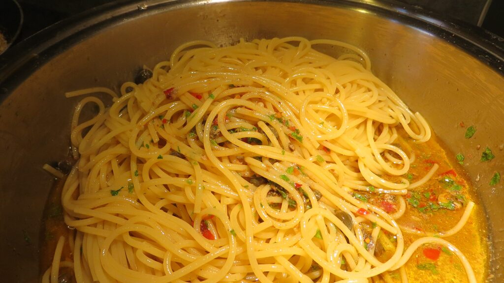 Espaguete anchovas e migalhas de pão, um prato simples e rápido, deliciosíssimo na minha opinião, da tradição gastronômica siciliana, minha terra! Em todas as famílias de pescadores, as anchovas em conserva nunca faltam, as esposas com mãos hábeis e paixão preparam, e com amor. Outro ingrediente para este prato, as migalhas de pão, que também é uma forma de reutilizar o excesso de pão caseiro, às vezes só porque com família numerosa o queijo fica escasso. Finalmente, as alcaparras, outro ingrediente para o espaguete anchovas e migalhas de pão, que a terra generosamente dá ao sul da Itália, com este prato a ideia é mostrar o que é a cozinha simples, mas rica em sabor.