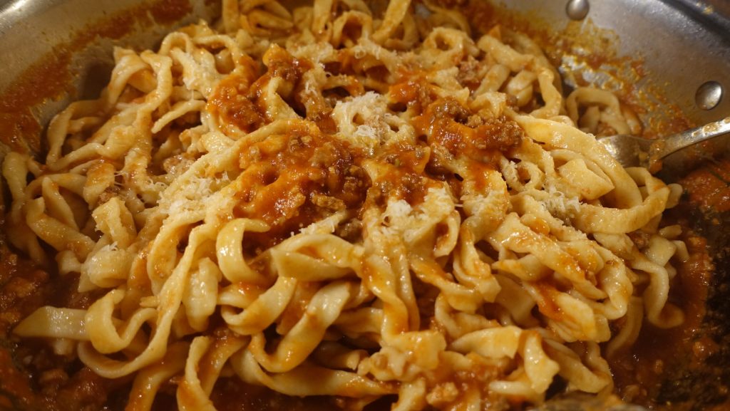 Tempere as fettuccine feitas em casa com ragù de carne, com bastante parmesão.