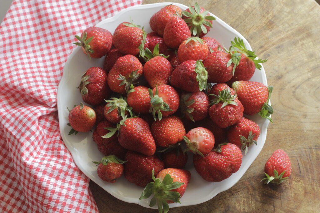 Limpe os morangos, lave-os com muito cuidado e rapidamente.
