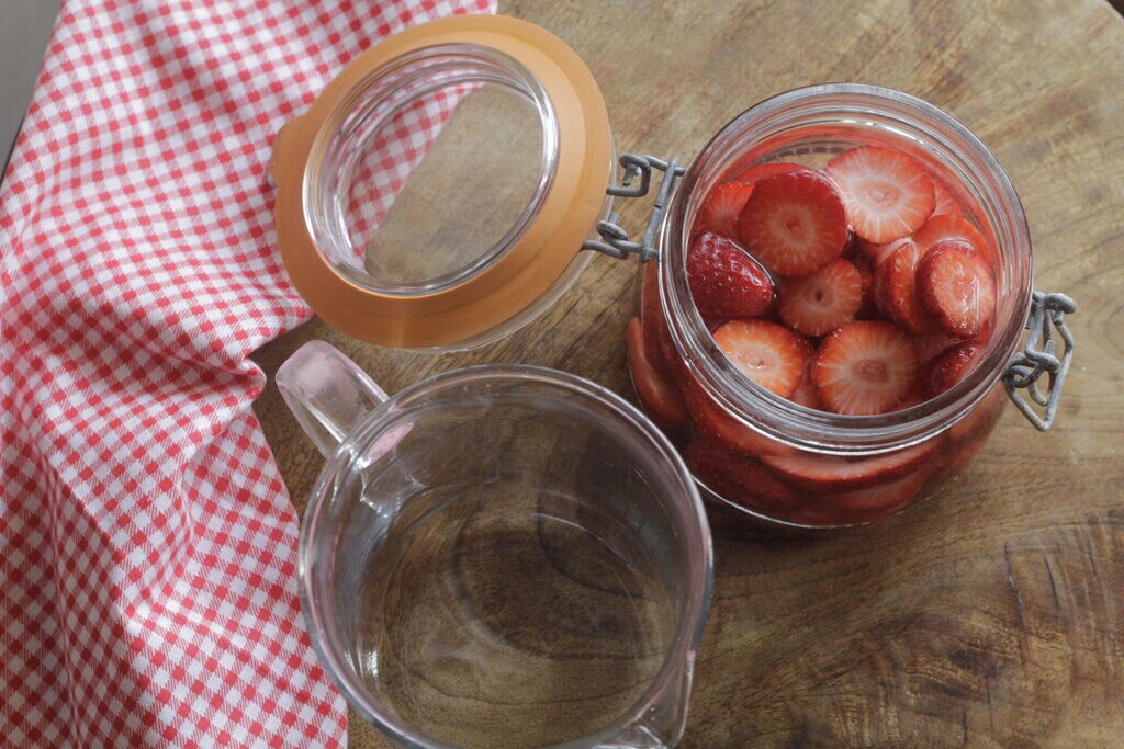 Fragolino receita licor de morango. Eu não sabia, por exemplo, que os morangos têm mais vitamina C que as laranjas! Mas o que realmente é bom e útil para mim, e não só, mas penso que para todos, é que 100 gramas fornecem apenas 30 Kcal, mas não o licor, obviamente! Para o bom resultado dos licores preparados em casa, como para todas as outras preparações obviamente na cozinha, depende principalmente da escolha dos ingredientes que devem ser sempre de primeira qualidade. As frutas devem ser super frescas assim como para as geleias. Mas notei uma grande diferença, desde que comecei a usar água destilada para preparar o xarope que é adicionado à base alcoólica, porque certamente tem menos impurezas e calcário do que a água da torneira, que certamente não é um detalhe a ser subestimado.