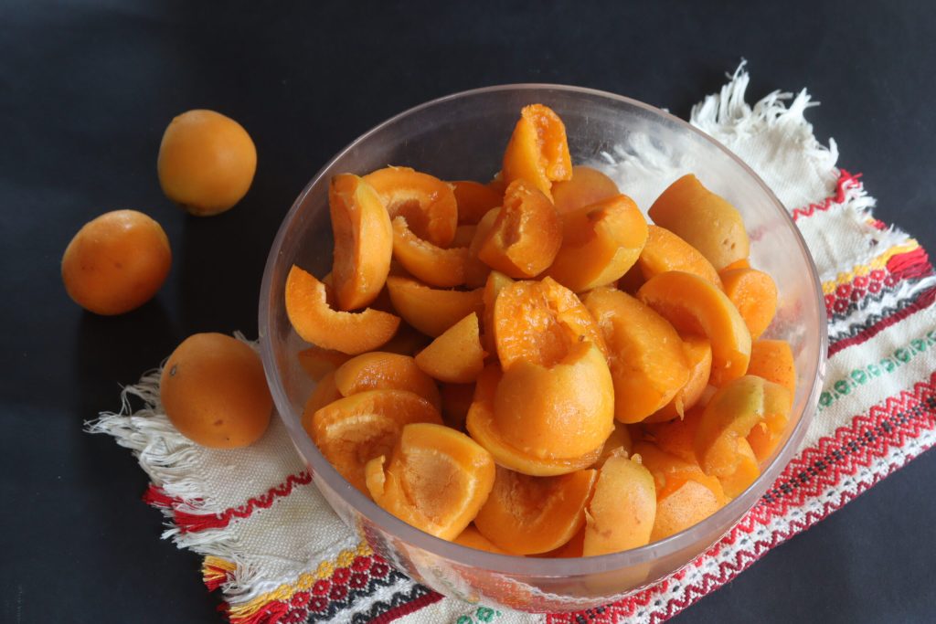 Coloco os damascos em uma tigela após remover os caroços (obviamente para preparar a geleia o peso dos damascos deve ser líquido dos caroços).