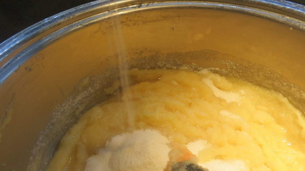 Coloque o purê de peras-marmelo na panela com o açúcar e