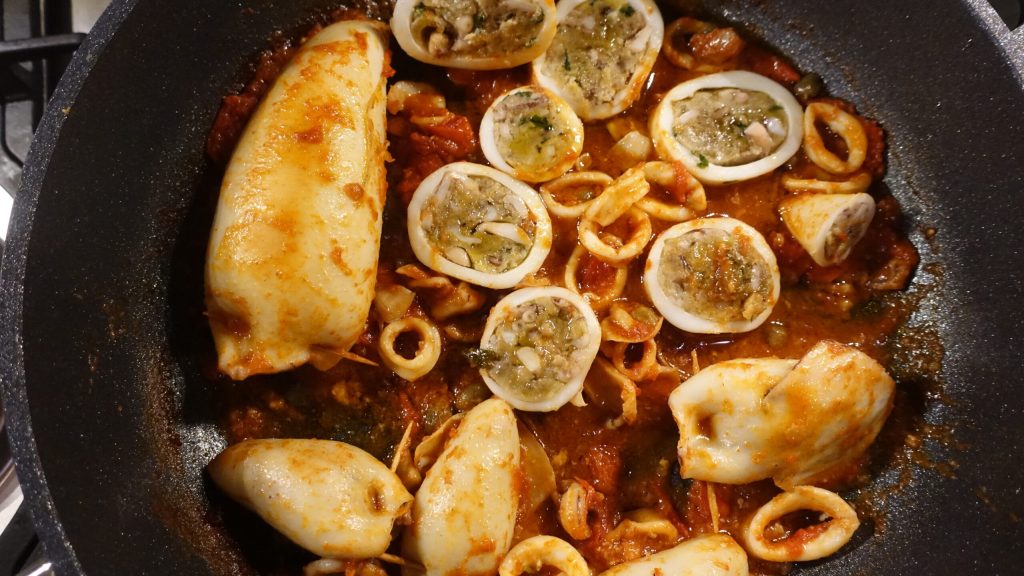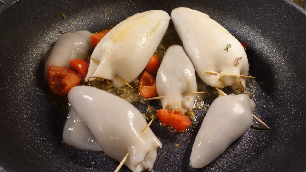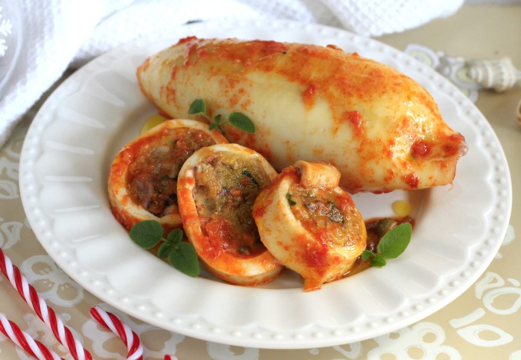 Lulas recheadas ao tomate. O peixe é um alimento sempre muito apreciado, seja do mar, do rio ou do lago. Com certeza, por suas propriedades nutritivas, o peixe é pobre em gorduras e tem muitas vitaminas, o do mar, então, é rico também em iodo. Como siciliana, o peixe nunca falta na minha mesa mais do que qualquer outra coisa, tendo nascido em uma cidade costeira, era tradição na minha casa cozinhar produtos locais como o peixe vendido pelos pescadores locais ou os vegetais cultivados a km zero pelo meu pai.
