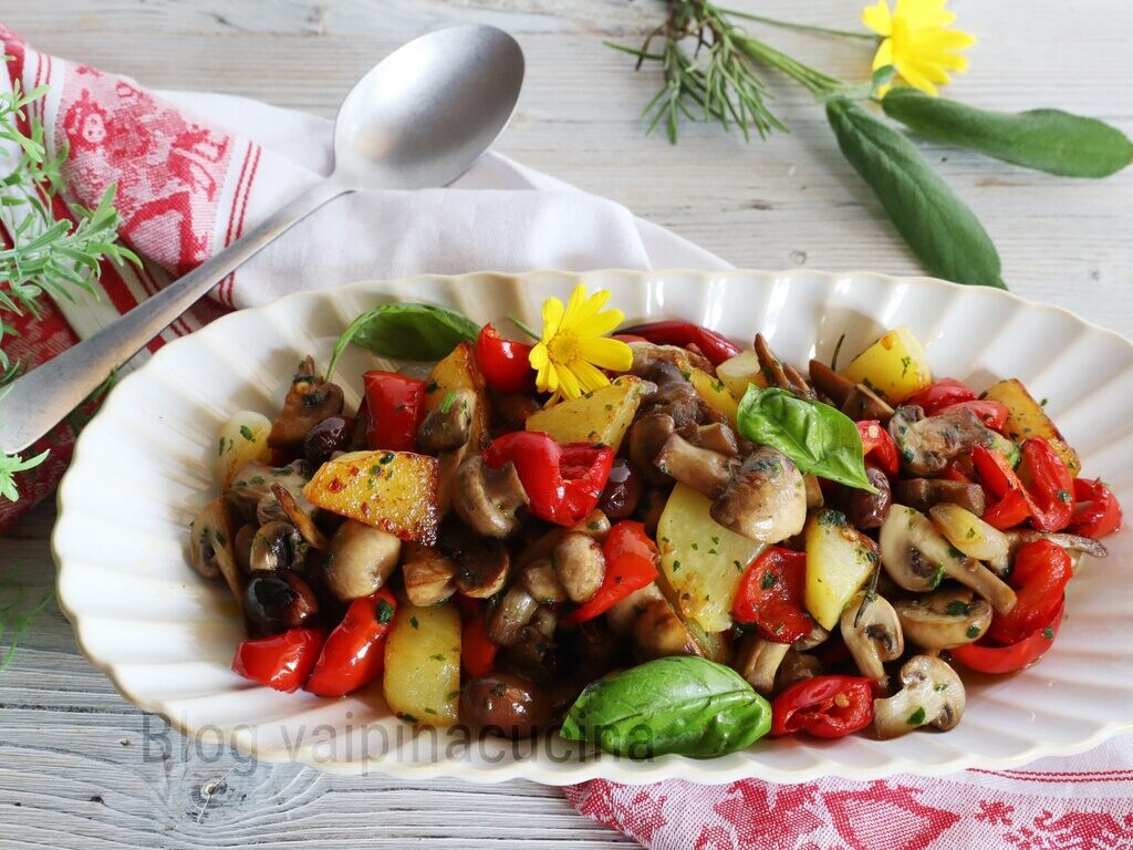 Aqui está pronto para ser servido um acompanhamento de dar água na boca! Papaccelle napolitanas cogumelos e batatas.