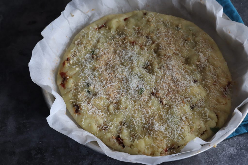 E aqui está ela, minha pitta de batata salentina.