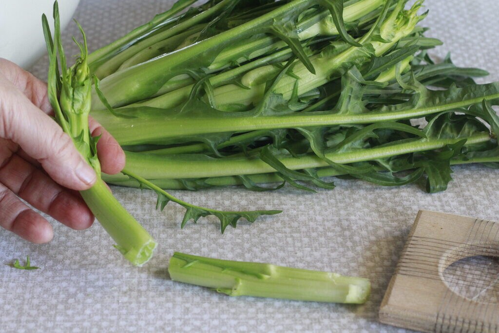 Preparação das puntarelle cruas