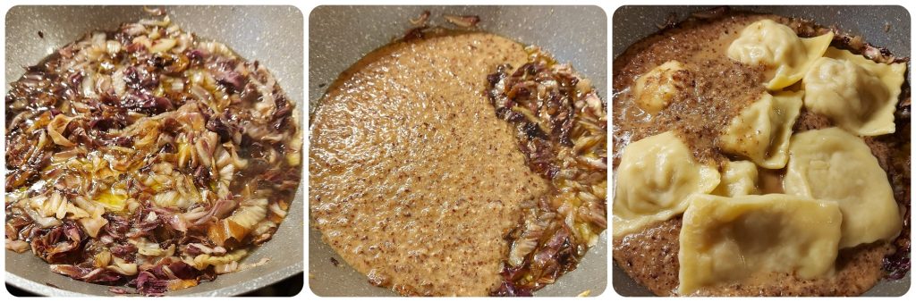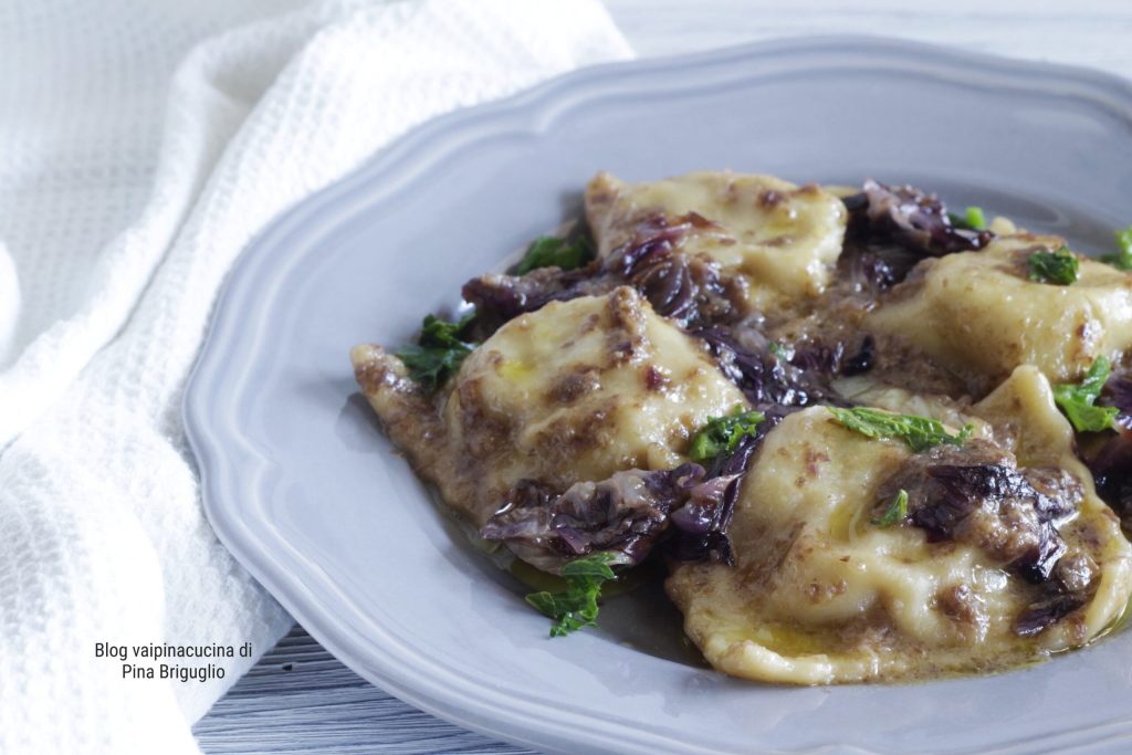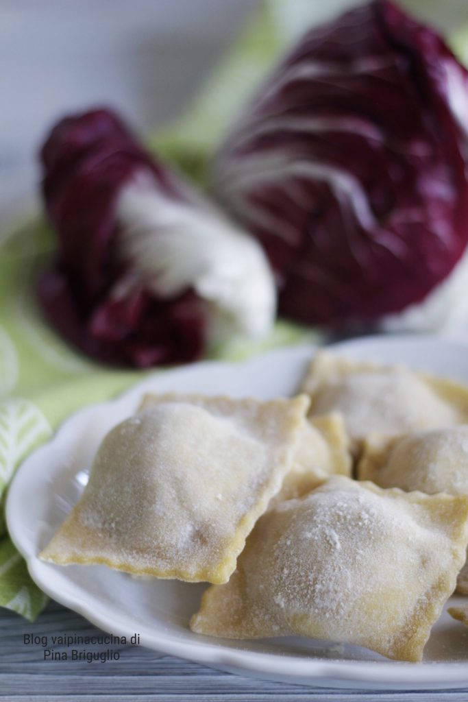 Deliciosos os raviolis de porchetta com radicchio e parmigiano