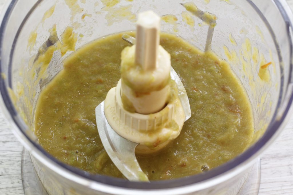 • Antes de adicionar o arroz, retirei duas conchas de aspargos cozidos com um pouco de sua água de cozimento.