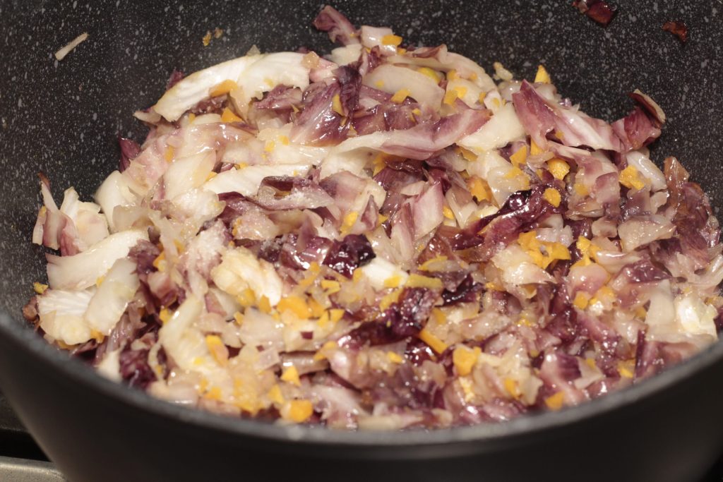 • Enquanto o radicchio cozinha um pouco, coloque uma panela pequena com água salgada para ferver.