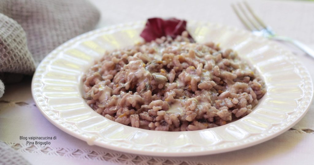 Risoto de radicchio e gorgonzola, uma combinação vencedora com a cremosidade do gorgonzola e o amargo do radicchio, um binômio perfeito para o sucesso do prato. Sob a denominação radicchio, na verdade, queremos reunir alguns tipos de radicchios vermelhos como o de Treviso e de Verona, ou um tipo de chicória clara como a endívia belga, que deve sua cor a uma técnica de cultivo feita no escuro. O radicchio lavado e seco, fechado em sacos plásticos, se conserva por muitos dias na geladeira. O radicchio é ótimo cru em saladas e cozido refogado, gratinado, no forno e na frigideira, também é excelente para a preparação de massas e risotos.