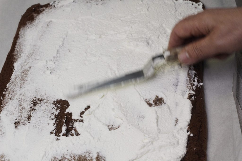 Adicione os morangos sobre o chantilly e enrole novamente.