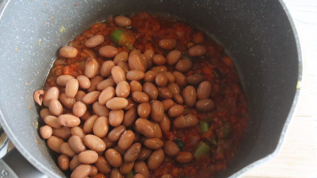 Agora adicione os feijões borlotti,
