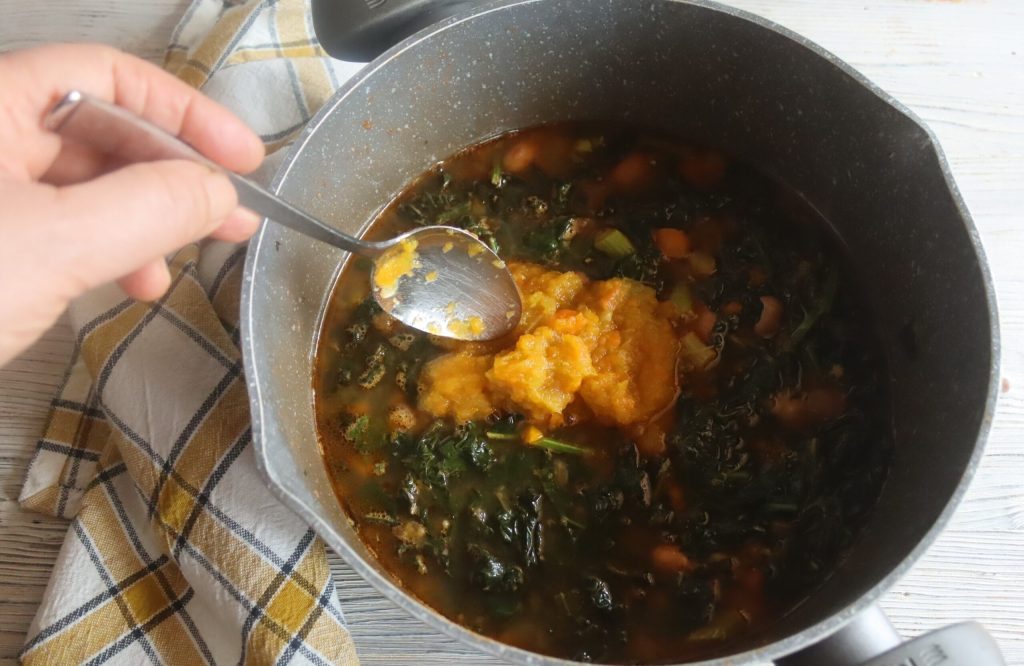 Misture e deixe descansar por alguns minutos antes de servir a sopa de couve negra.