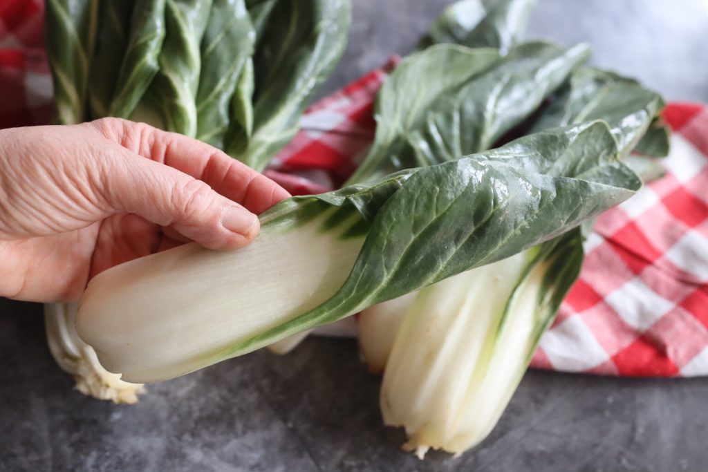 Corto a parte verde e deixo apenas os talos brancos da acelga.