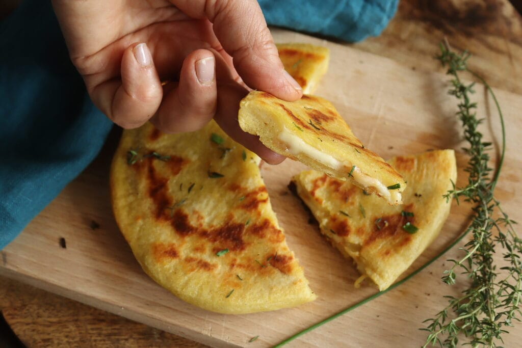 Tortinhas e bolinhos de batata macias e perfumadas com noz-moscada, derretendo com provolone defumado, um segundo prato delicioso e rápido de preparar com apenas dois ingredientes: batatas e provolone, mas, obviamente, com farinha, ervas, sal e azeite de oliva extra virgem. Você pode prepará-las em pequenas porções individuais ou, caso contrário, em um único bolinho grande. Eu as preparei de ambos os modos e devo dizer que gosto de ambos, são deliciosas.