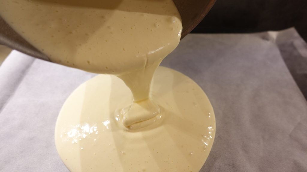 Prepare sobre a bancada uma folha de papel manteiga e vire sobre ela a base do tronco cozido.