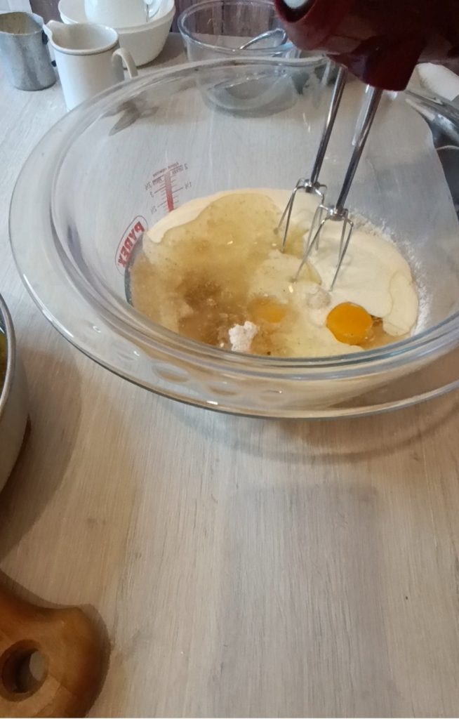 • Adicione o restante dos ingredientes e misture bem com as batedeiras em velocidade média, não precisa bater a massa, apenas deixá-la bem cremosa
