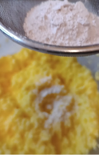 • Peneire o fermento junto com a farinha e adicione à massa, e adicione também o aroma escolhido