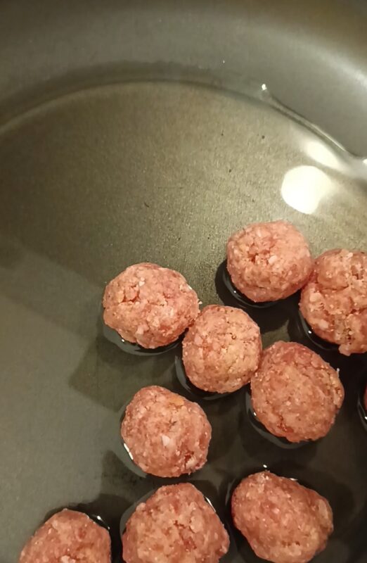Comece preparando as almôndegas, que você irá fritar primeiro e depois adicionará ao molho