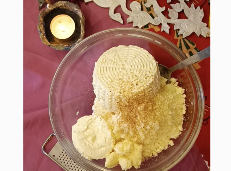 Depois prepare o recheio de ricota, misture bem até obter um composto homogêneo, não adicionei ovos, assim fica muito cremoso.