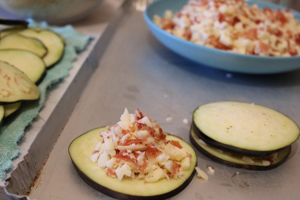 • Faça uma primeira camada de molho na travessa e disponha as berinjelas, adicione o restante do molho e polvilhe com queijo grana.