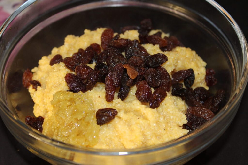 Polenta, passas e açúcar
