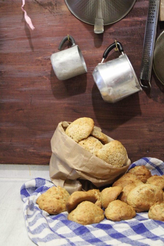 Receita de biscoitos integrais à base de água. Porque com essa história de que tudo nos faz mal, precisamos encontrar uma solução; se também quisermos gerenciar a economia doméstica, conseguir criar algo bom sem gastar uma fortuna é ainda melhor! Muitos biscoitos antigos eram preparados justamente com matérias-primas econômicas, naturalmente a farinha não faltava, muitas vezes era integral e moída em pedra, agora posso dizer que é uma sorte poder encontrar farinhas não tratadas. Acrescentavam-se os ovos que serviam para ligar; banha ou óleo, manteiga quando havia, para dar um pouco de maciez e friabilidade. Se em casa havia leite, usava-se, caso contrário, usava-se água. Este é um biscoito integral à base de água, leve e friável. Você pode escolher deixá-lo macio ou um pouco mais seco. Eu poderia quase dizer que é um biscoito saudável! Esta é a base. Às vezes adiciono gotas de chocolate ou na superfície, granulado de frutas secas: avelãs ou amêndoas. Assim, torna-se um biscoito para dar de presente, para molhar; para comer como lanche.
