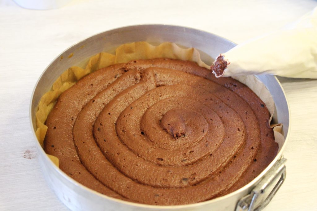 Forre a forma e crie o fundo do bolo, depois faça duas voltas para levantar as bordas…