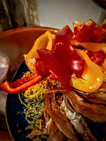 O bergamota confere ao prato uma frescura cítrica, que se mistura harmoniosamente com o sabor doce e levemente picante dos pimentões. A adição das anchovas, que oferece um aroma de mar, completa a experiência sensorial.
