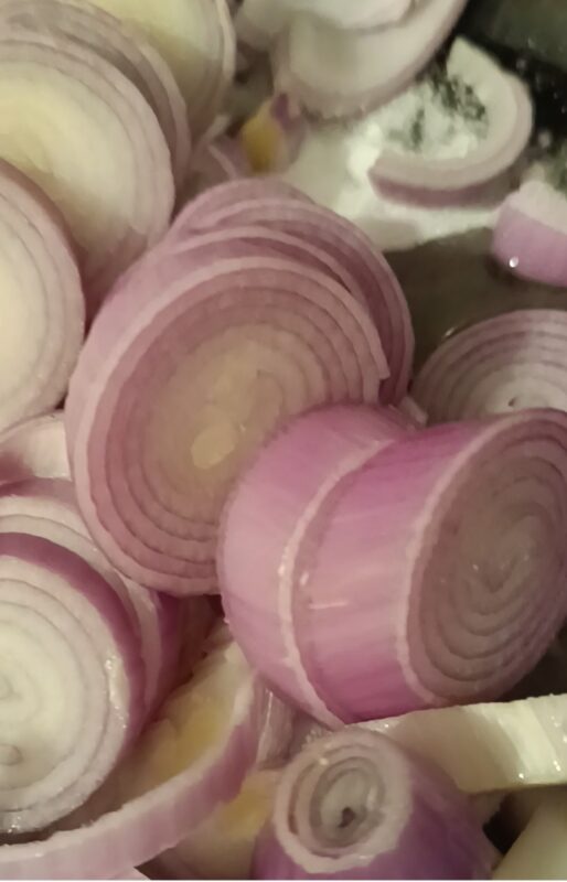 • 600 cebolas roxas de Tropea (Qualquer cebola serve, hoje tinha estas em casa.)