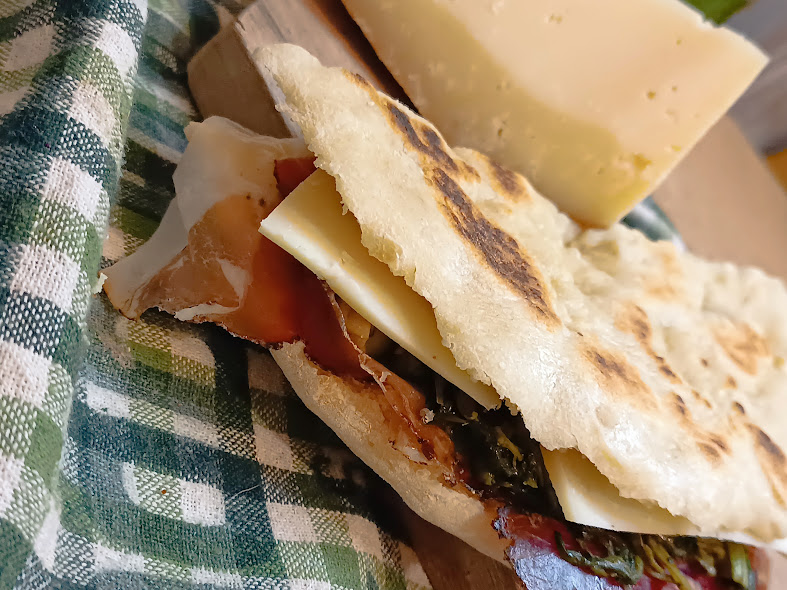 • Enquanto isso, aqueça a pedra ou a frigideira e depois cozinhe a crescia, primeiro de um lado e depois do outro.