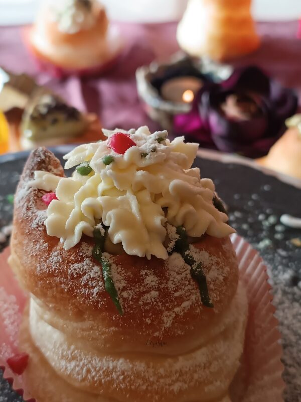 Massa folhada, mascarpone, creme de leite e biscoitos amaretti… Decorações de açúcar