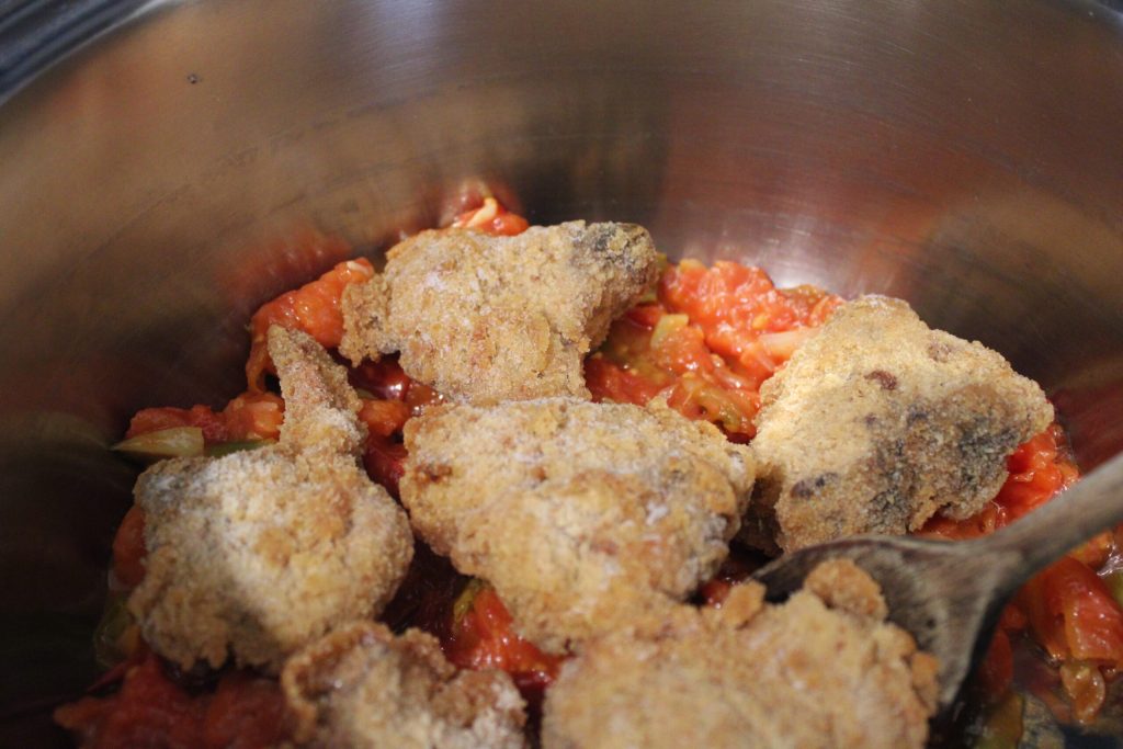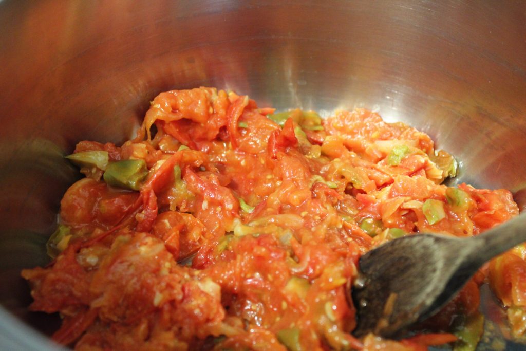 Depois, junte-as ao molho de tomate e finalize o cozimento por mais cerca de trinta minutos. Se desejar, não adicionei nos ingredientes, mas você pode adicionar um pedacinho de pimenta picante ao refogar a cebola.