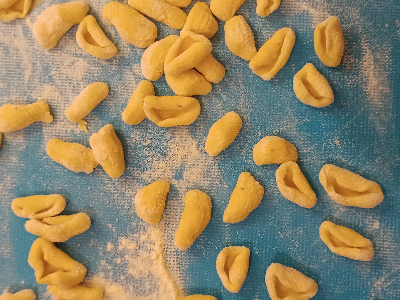 Enquanto isso, leve a água de cozimento para ferver com o sal adicionado e cozinhe os croset por cerca de cinco minutos… Verifique sempre o cozimento, cada farinha tem suas características. Escorra e