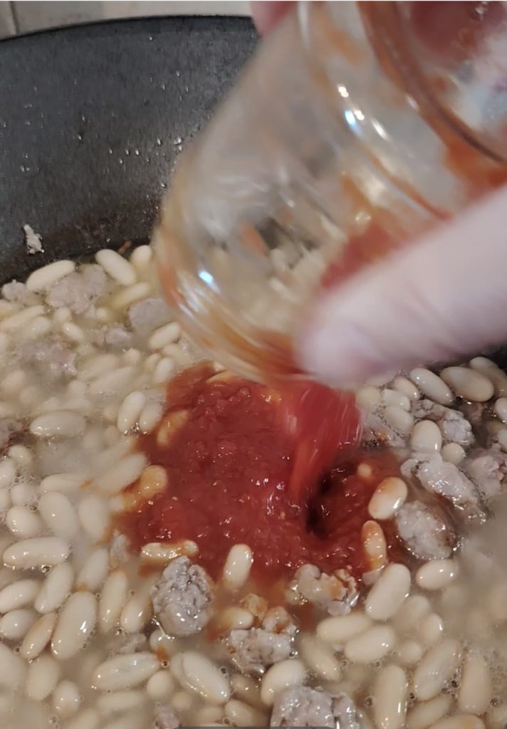 Uma maneira de trazer o tempo de volta. E hoje com este gesto eu finalmente fiz as pazes com a minha história. Para fazer os pisarei com feijão você precisará de: farinha, pão ralado fino, água morna, sal. Misture a farinha com o pão e adicione a água aos poucos, amasse bem depois de salgar, faça salsichinhas e depois corte em pequenos pedaços e pressione com o polegar na bancada; formarão os pisarei. Em uma panela, doure a linguiça sem pele e em pedaços, adicione os feijões previamente cozidos com um maço de ervas aromáticas. (Antigamente usava-se o feijão-fradinho, atualmente usa-se tanto o feijão borlotto quanto o cannellini.) Adicione um copo de molho de tomate e cozinhe em fogo baixo por cerca de uma hora.