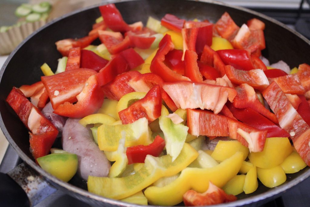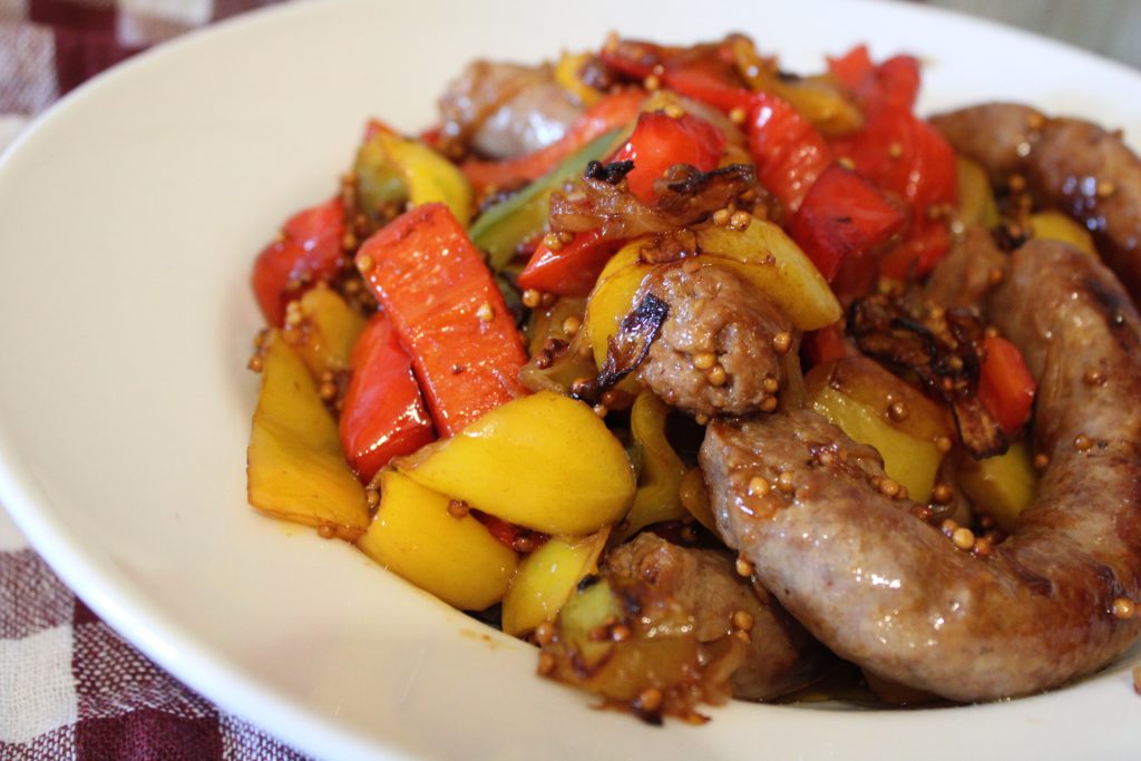 Linguiça, pimentões e mostarda