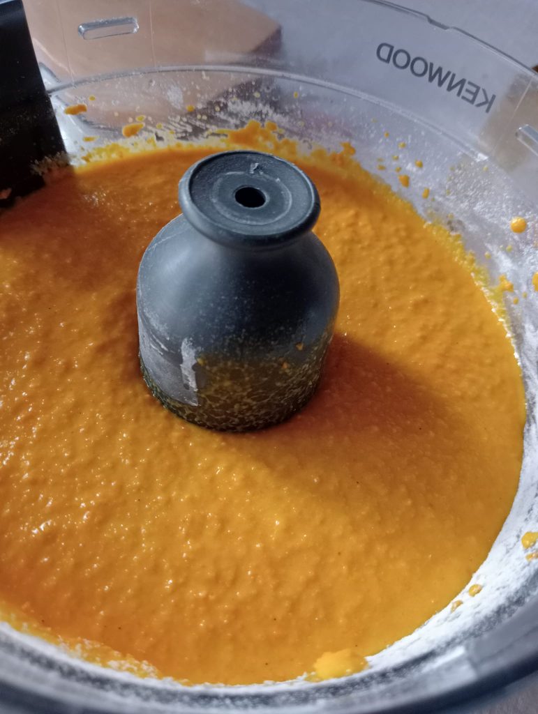 • No processador coloque as cenouras, o açúcar, o óleo, o vinagre, o aroma, o suco e a casca do cítrico escolhido, os ovos e a baunilha, misture tudo até obter um creme