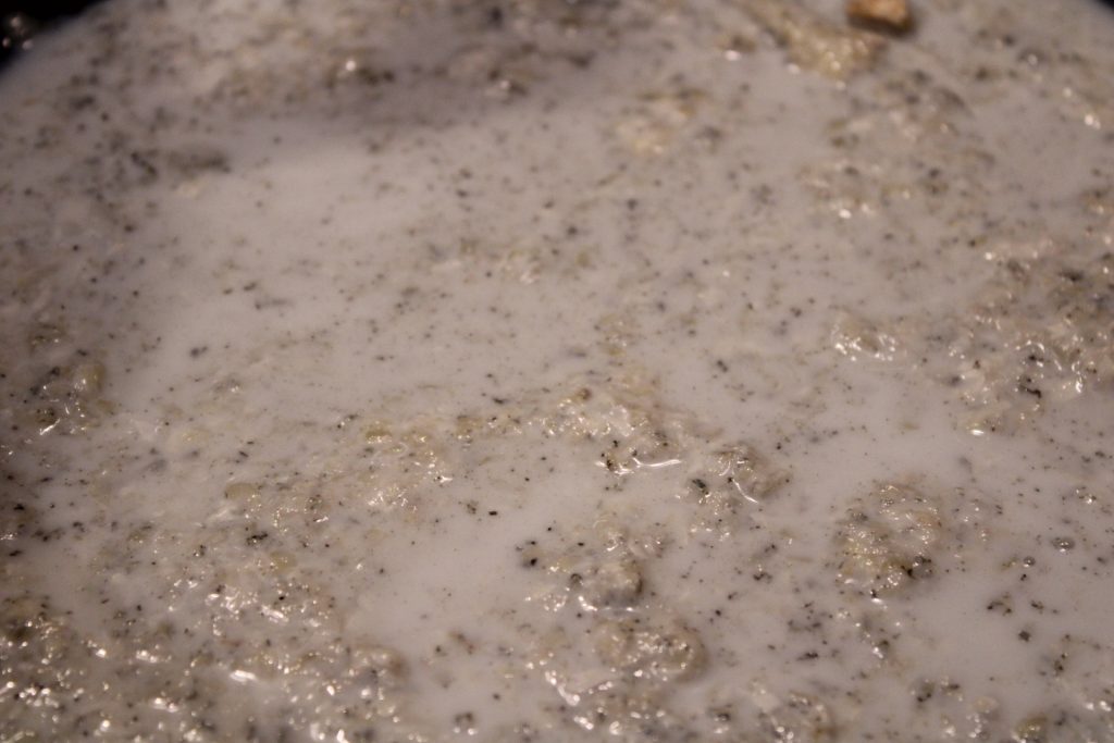 Em uma frigideira, aqueça o leite e adicione o queijo, deixando derreter.