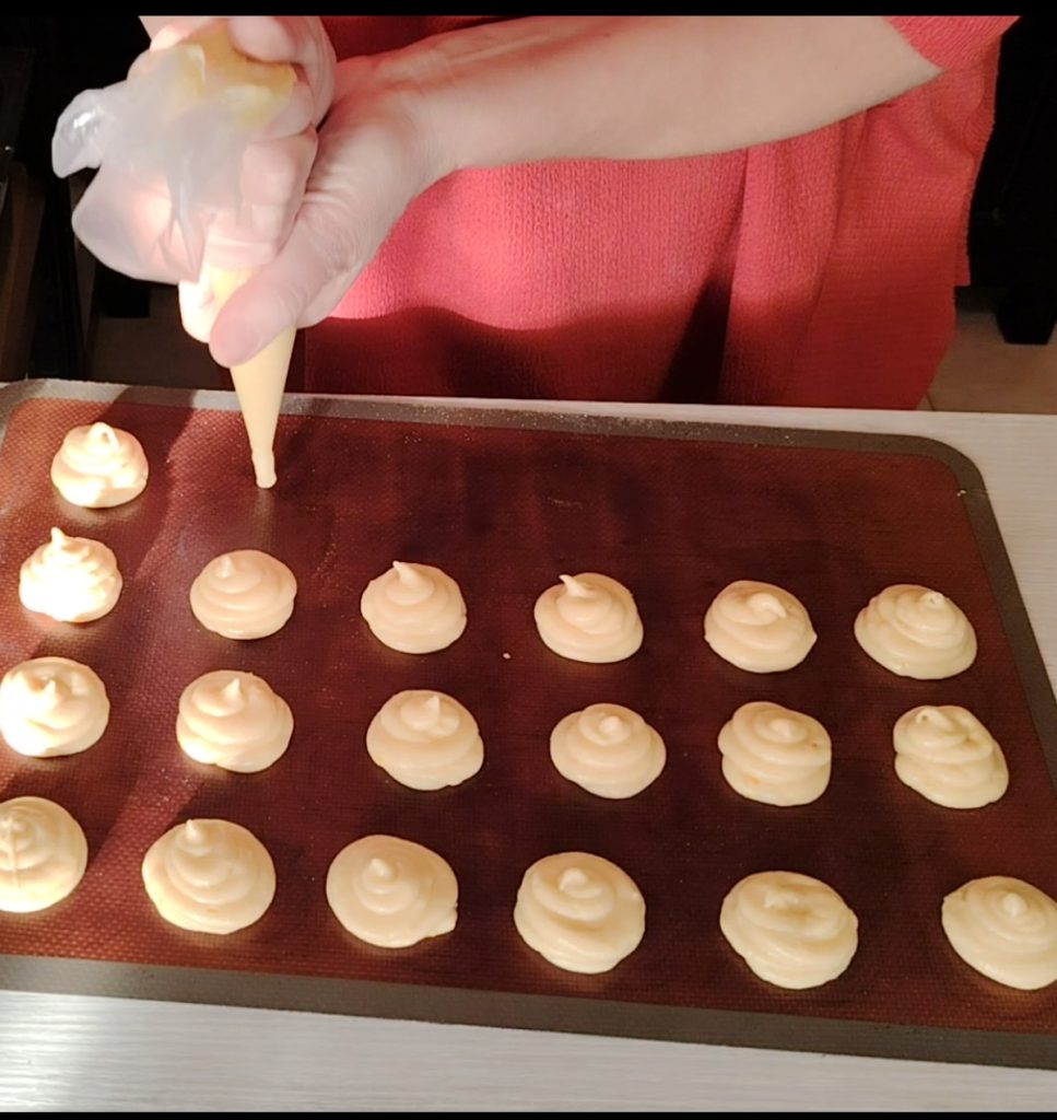 Com a ajuda de uma batedeira elétrica, crie uma mistura macia e transfira para um saco de confeiteiro com bico liso.