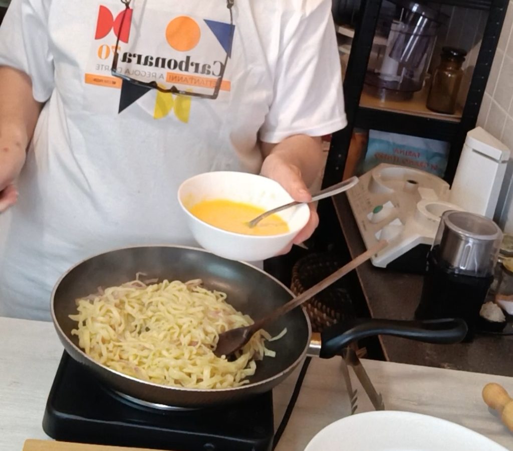 A verdadeira origem da carbonara ainda é um mistério, mas em Roma ela se tornou um símbolo italiano graças à sua versatilidade e simplicidade. Hoje proponho preparar os tonnarelli à carbonara, uma variante de massa romana feita com sêmola de trigo duro e água, caracterizada por uma seção quadrada.