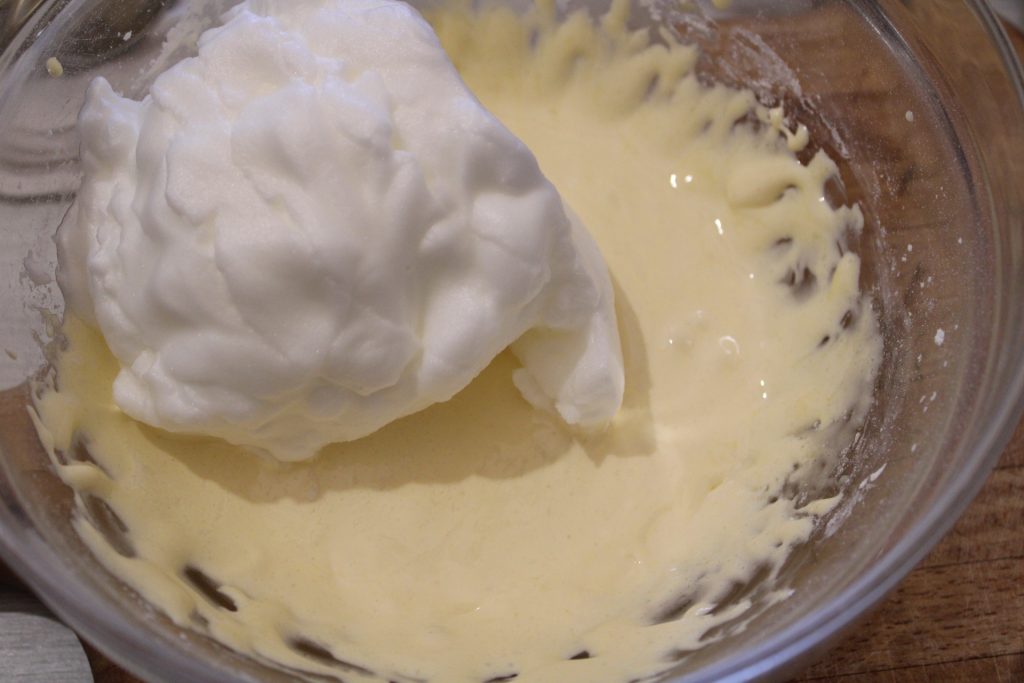 Neste ponto, incorpore as claras batidas. Misture delicadamente