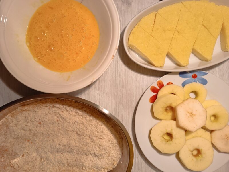 E assim, até hoje, quando me sinto nostálgica ou com vontade de algo doce e envolvente, as maçãs e a sêmola estão entre os meus primeiros pensamentos. Aquela simplicidade e bondade que caracterizavam os fritos que eu preparava na gastronomia tornaram-se parte de mim, me proporcionando um momento de paz e prazer toda vez que os saboreio. Mas como se diz, os doces fritos são saborosos e trazem alegria, estão frequentemente ligados às memórias e às coisas boas, a algum sorriso, e eu não posso deixar de confirmar esse ditado! Mas neste caso, a sêmola e as maçãs fritas…Segue abaixo…