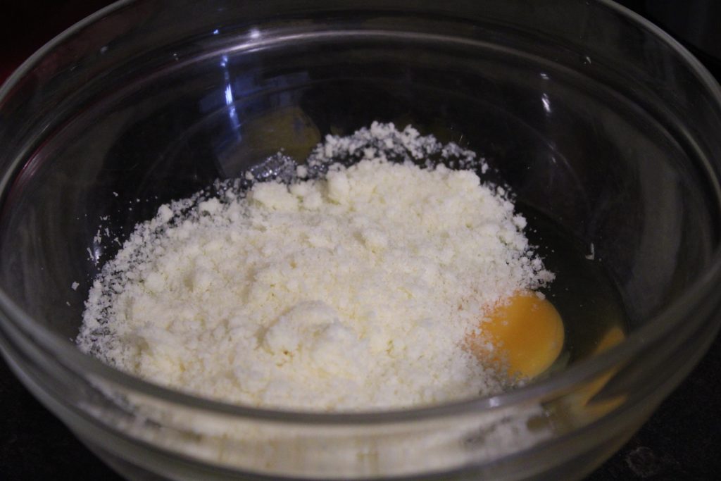 • Unir os ovos e o queijo, misturar bem até obter uma mistura homogênea.