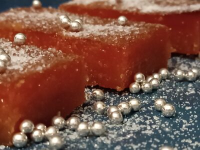Passe os marmelos na peneira…adicione o mesmo peso de açúcar, metade mascavo e metade branco. Coloque novamente no fogão em fogo baixo por pelo menos 1 hora…Mexa continuamente porque gruda facilmente no fundo. O purê deve ficar compacto e se soltar pouco da colher. Neste ponto, despeje a mistura em uma assadeira untada ou forrada com papel manteiga, deixe secar no forno a 60/70 graus por 4/5 horas. Quem tiver a sorte de ter um fogão a lenha, use o forno do fogão. Outra possibilidade é usar o desidratador durante toda a noite.