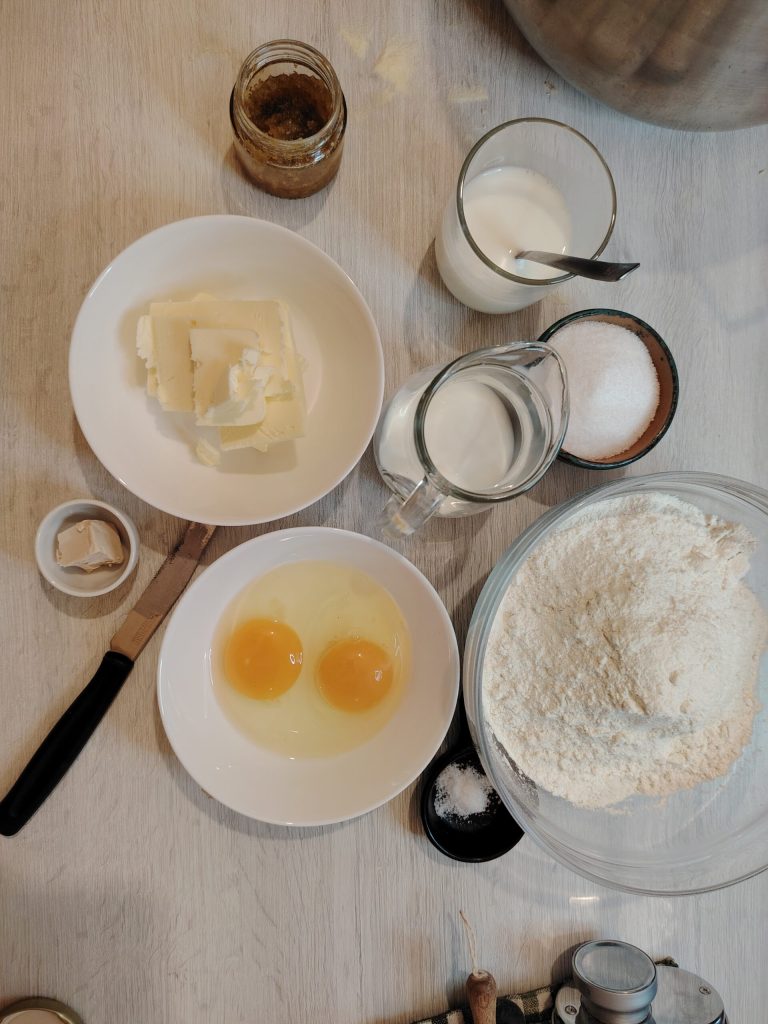Uma tigela para amassar, uma assadeira para levedar e assar, pincel para a superfície.