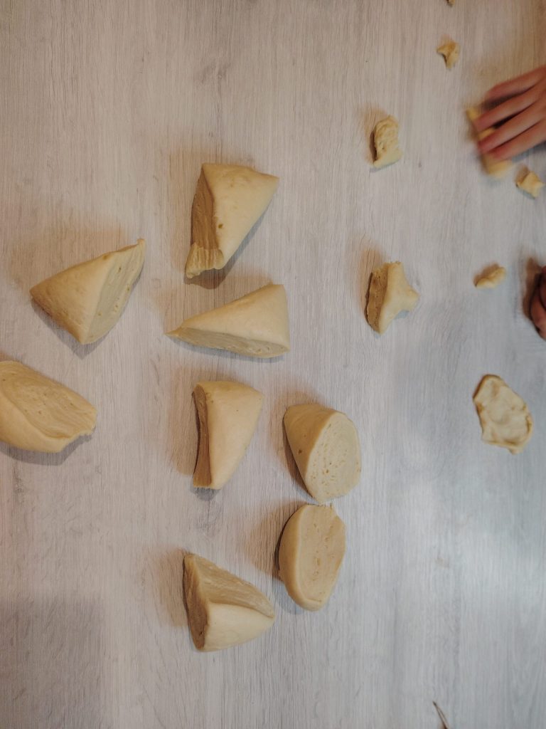 Dê uma forma alongada como na foto e deixe levedar até dobrar de tamanho.