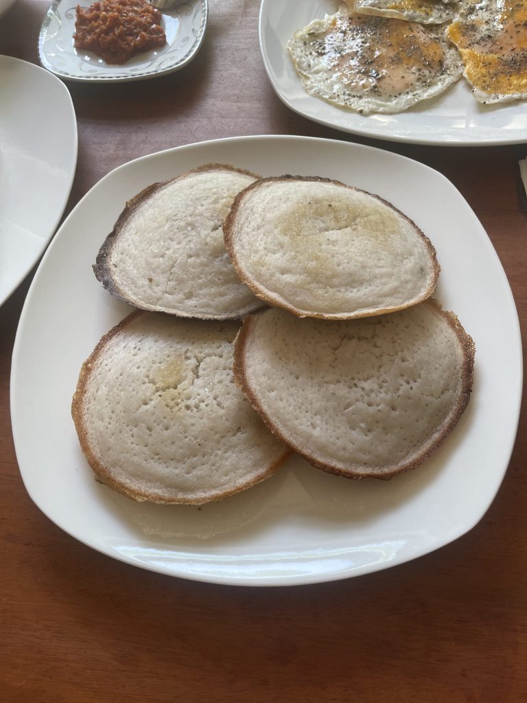 São a versão básica: finos e crocantes nas bordas, macios no centro, preparados com uma massa fermentada à base de farinha de arroz, leite de coco e fermento ou fermentação natural.