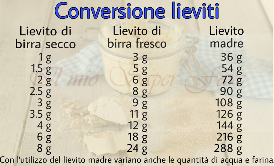 Aqui está a tabela de referência para a conversão de fermentos.