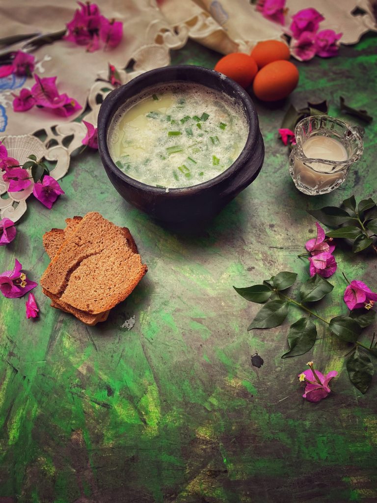 Pão: Tradicionalmente, a changua é servida com “calados” (pão duro colombiano) ou pão torrado, que pode ser mergulhado na sopa.